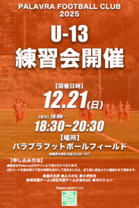 2026年度 新U-13最終練習会 12/21(日)開催!!